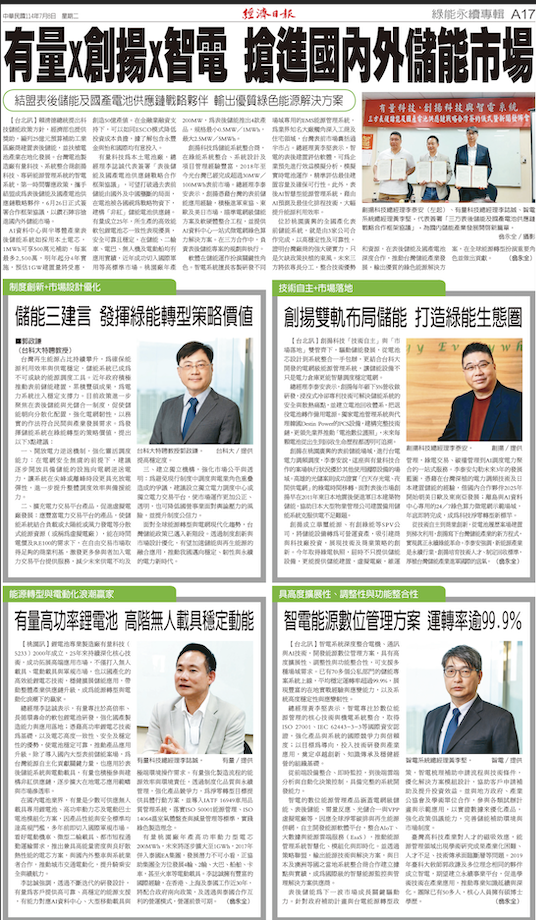 2025/7/08創揚科技 ➕ 有量科技 ➕智電系統 三方結盟共同為表後儲能 提供一站式綠色能源解決方案
